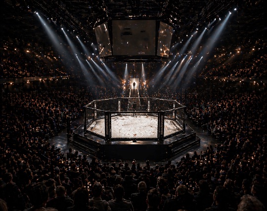 Platesnis vaizdas į visą renginį – kovos, šou ir atmosfera vienu metu.